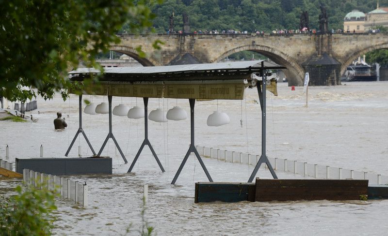 Затоплений ресторан на набережній річки Влтава в центрі Праги / © Фото EPA/UPG