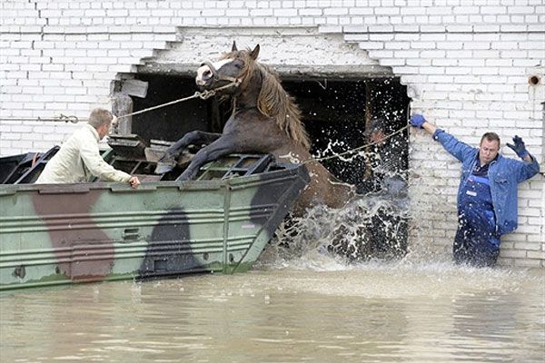 Рятувальні служби проводять евакуацію домашньої худоби у селі Юлішев / © AFP