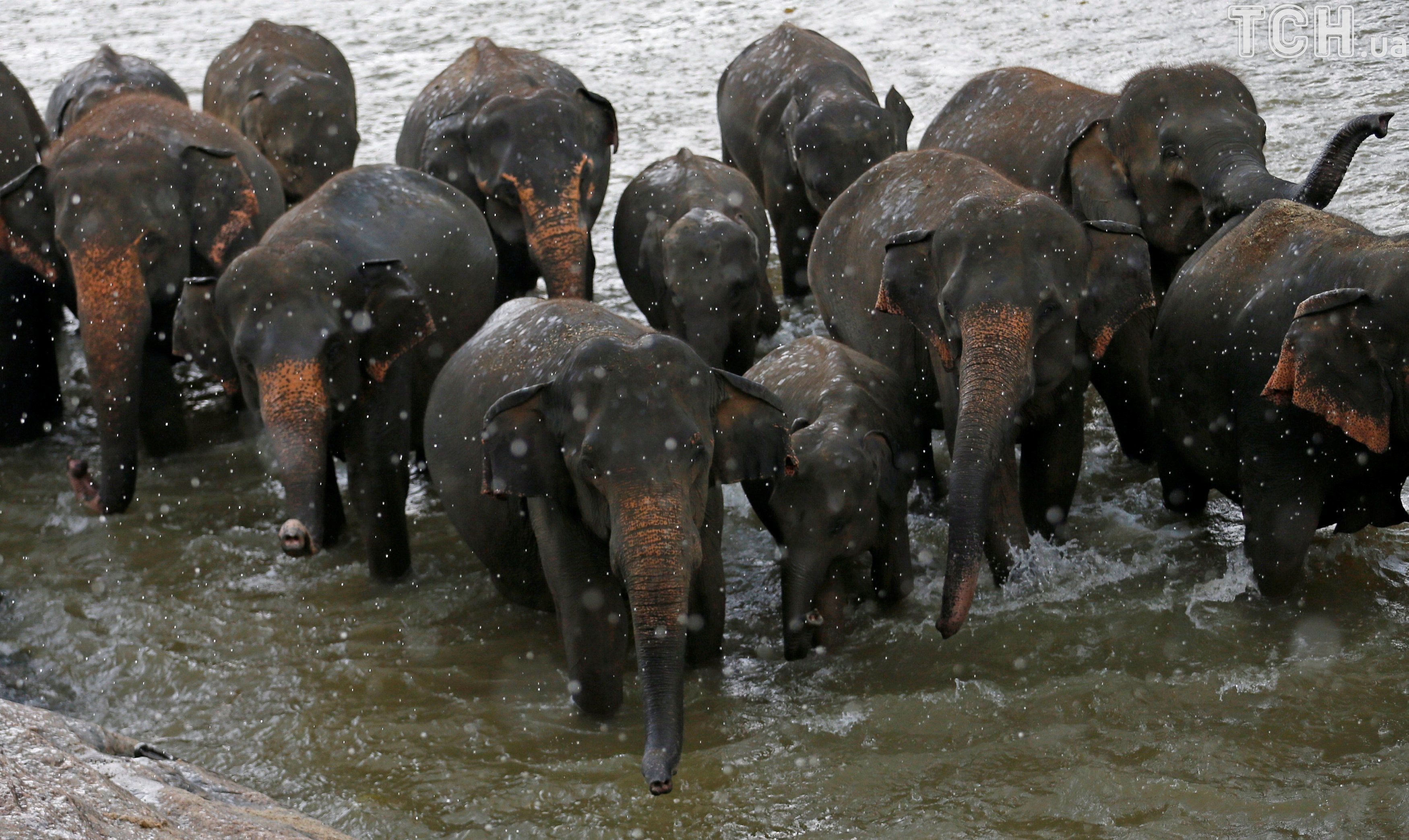 Reuters показало кумедні фото слонів під час щоденного плавання в річці в дитячому будинку для слонів на Шрі-Ланці.