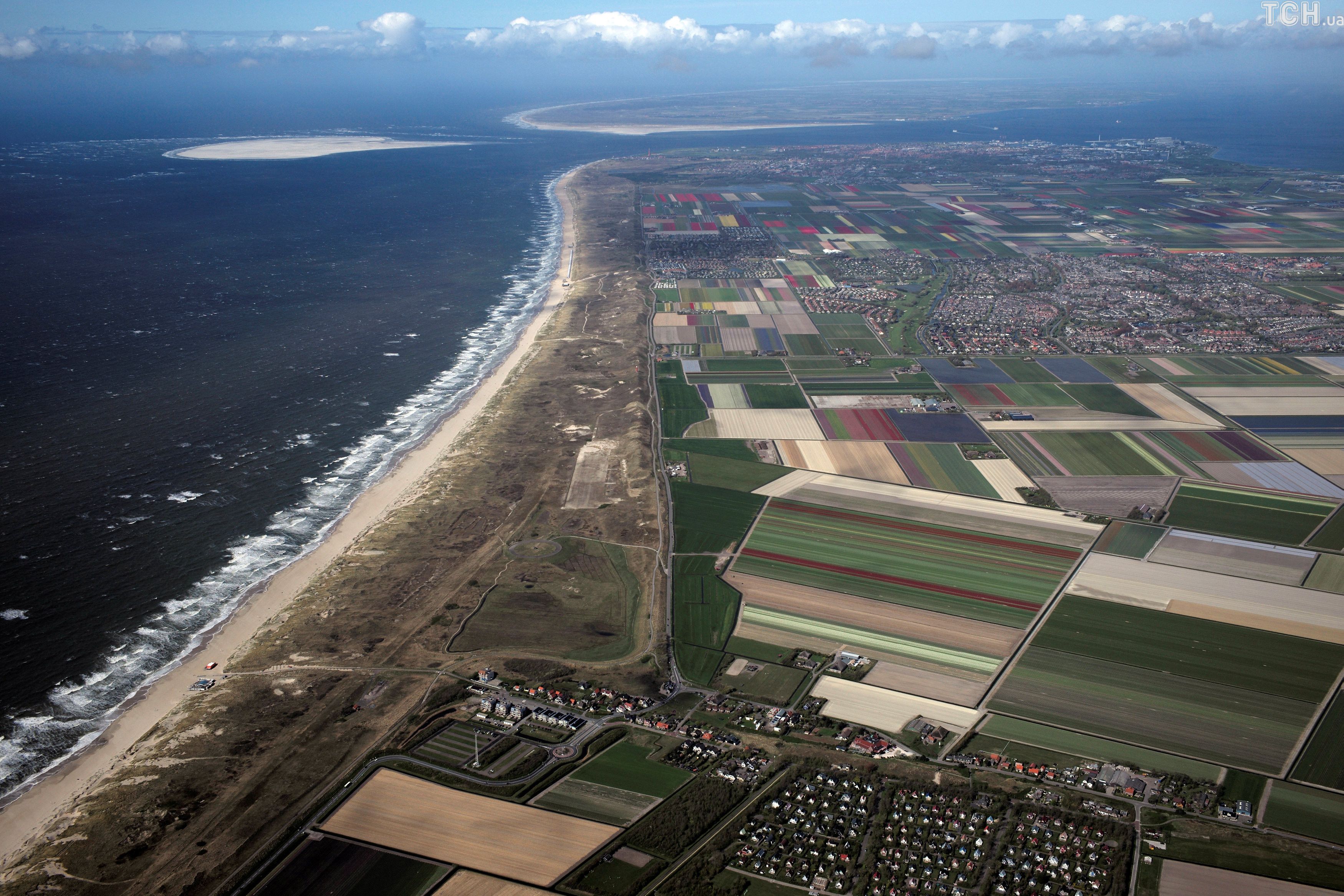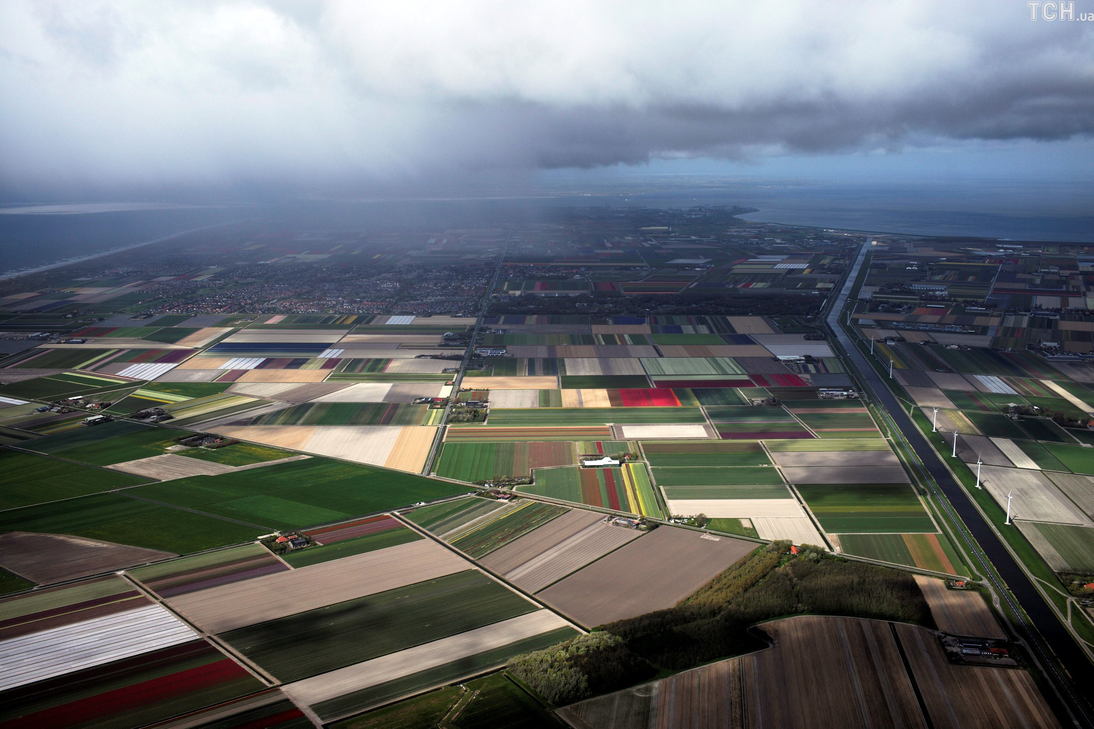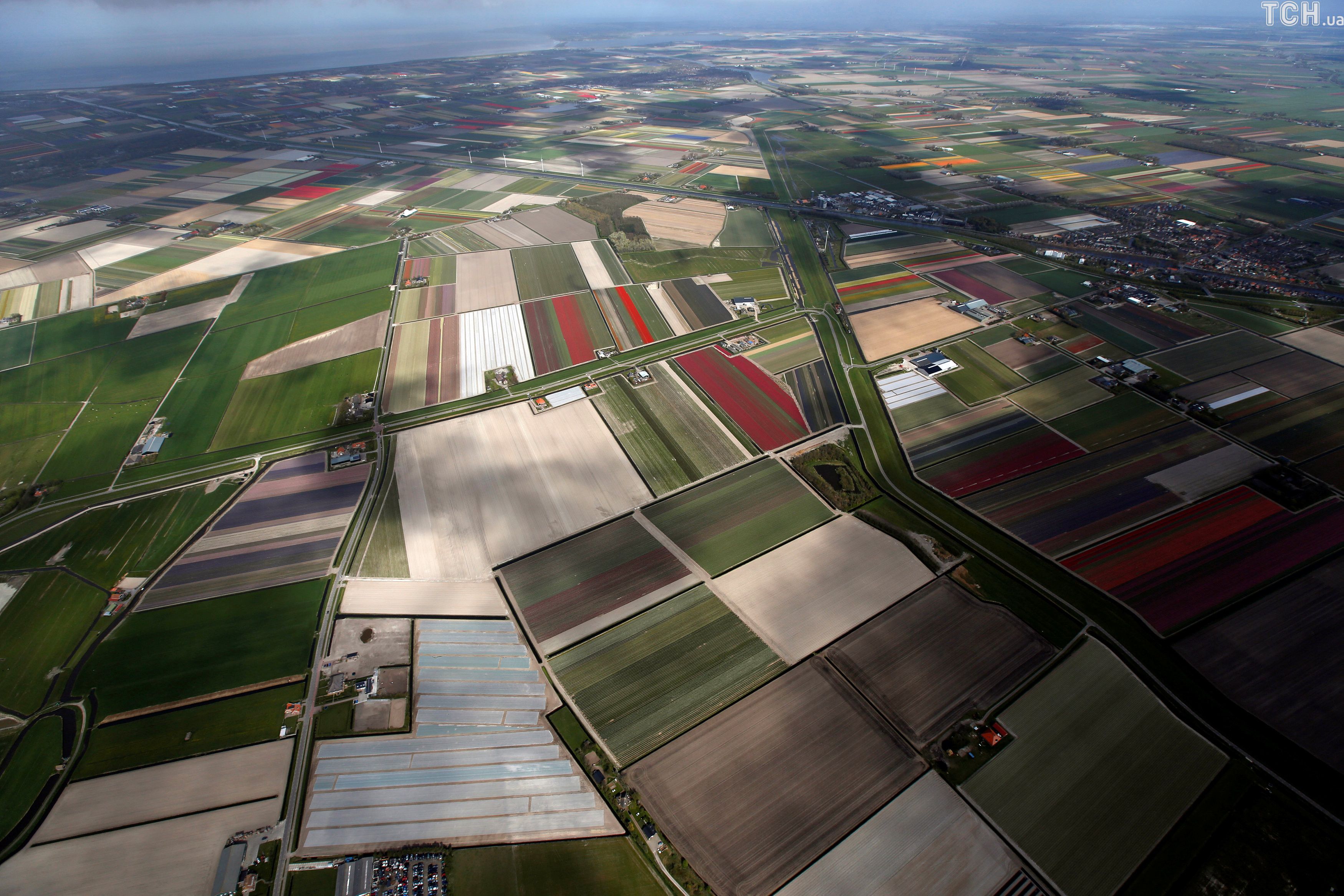 Reuters показало величезні поля тюльпанів у Нідерландах з висоти пташиного польоту.