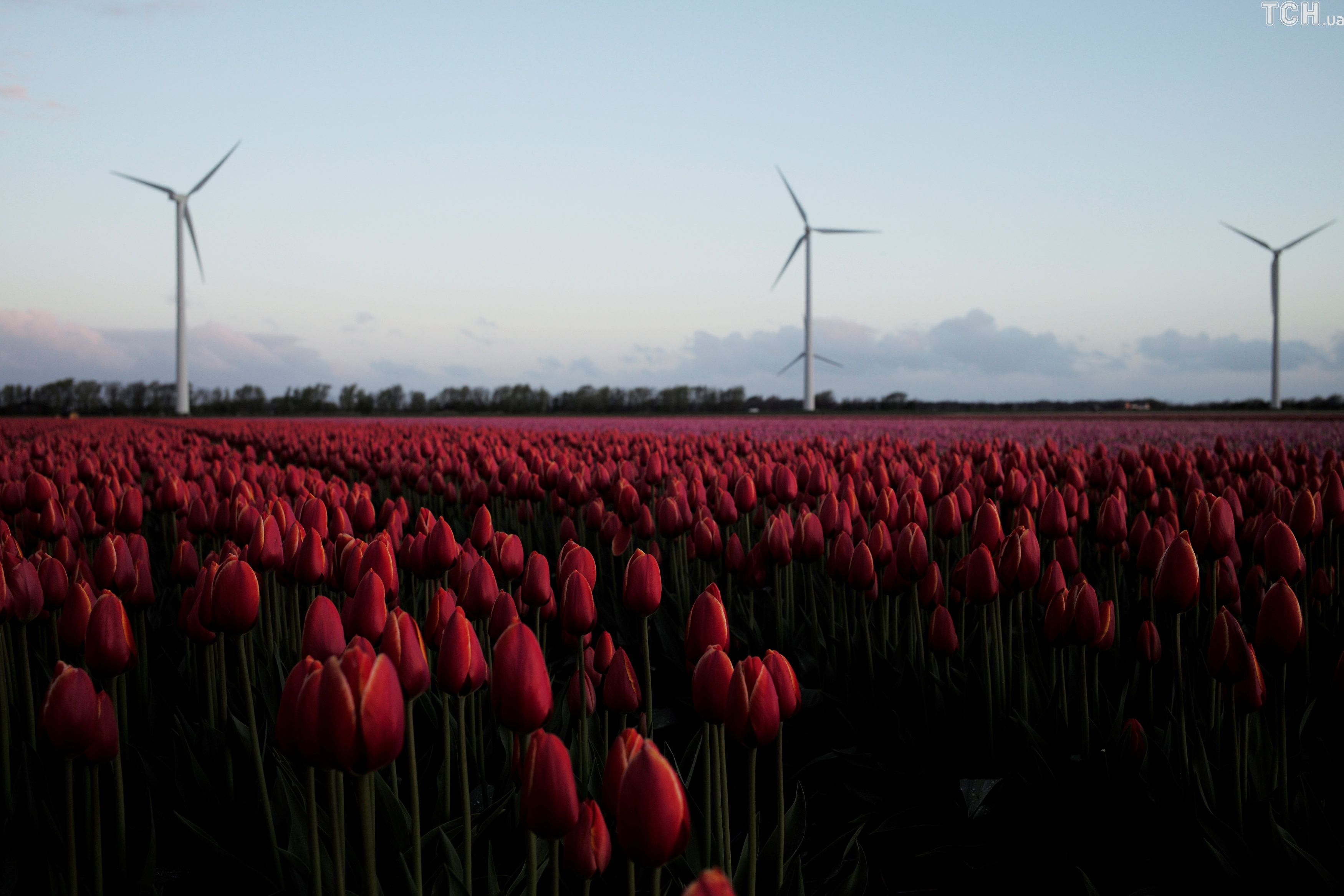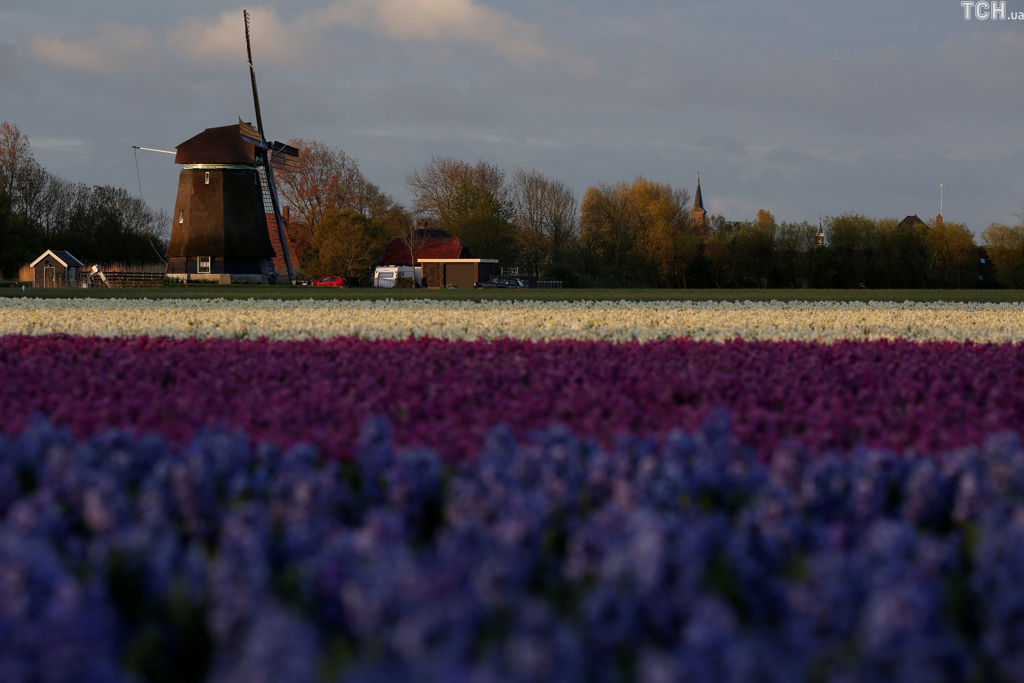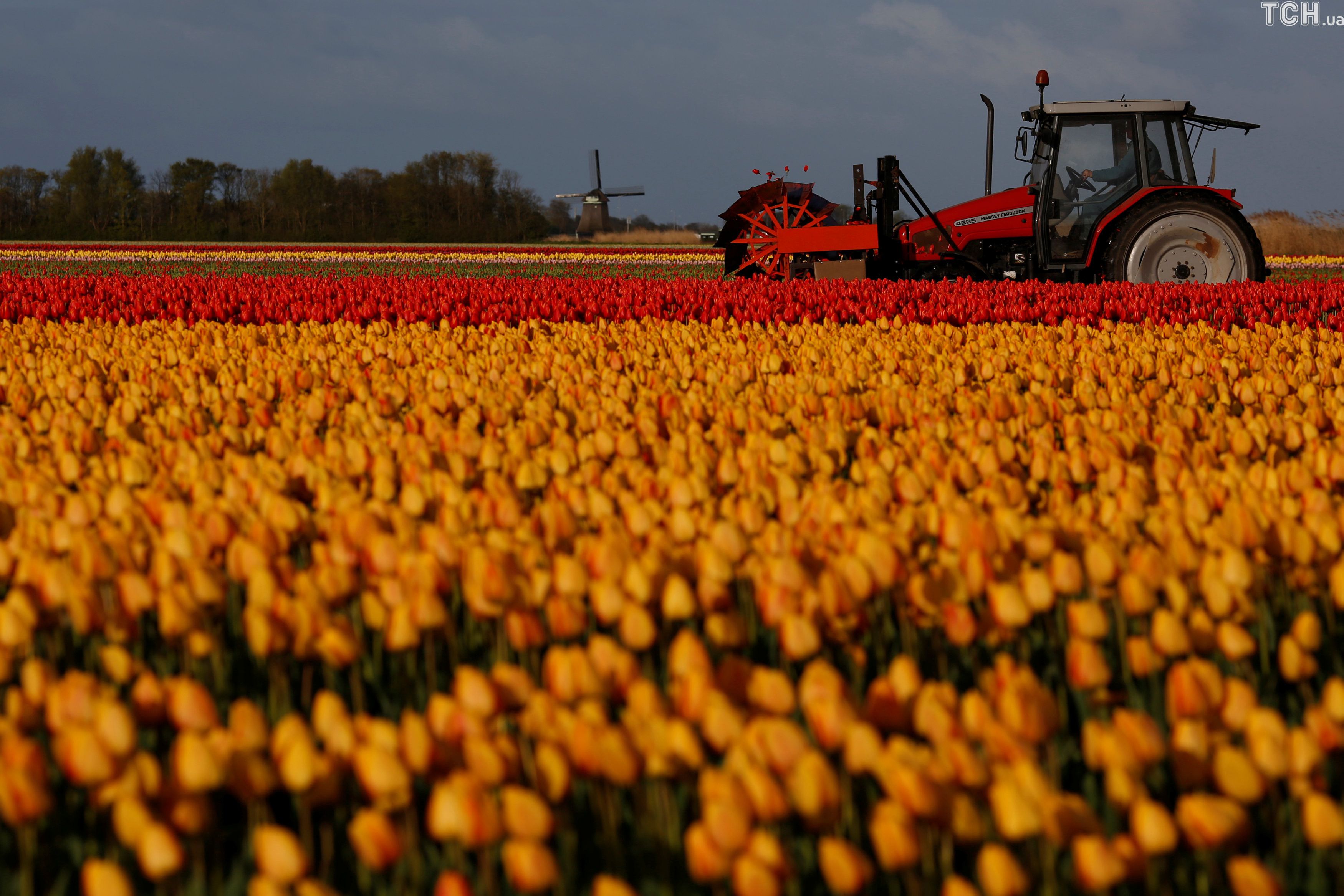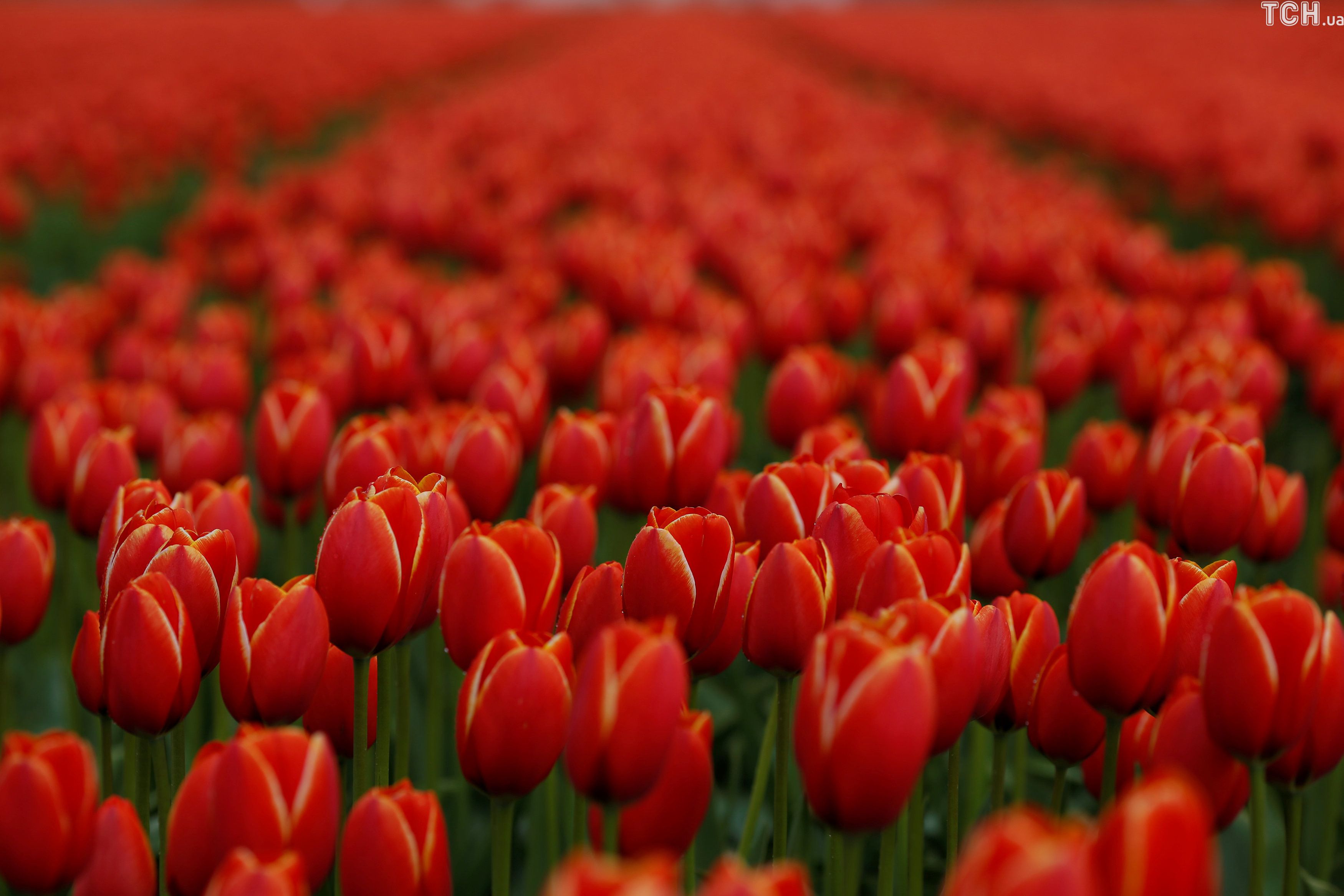 Reuters показало величезні поля тюльпанів у Нідерландах з висоти пташиного польоту.