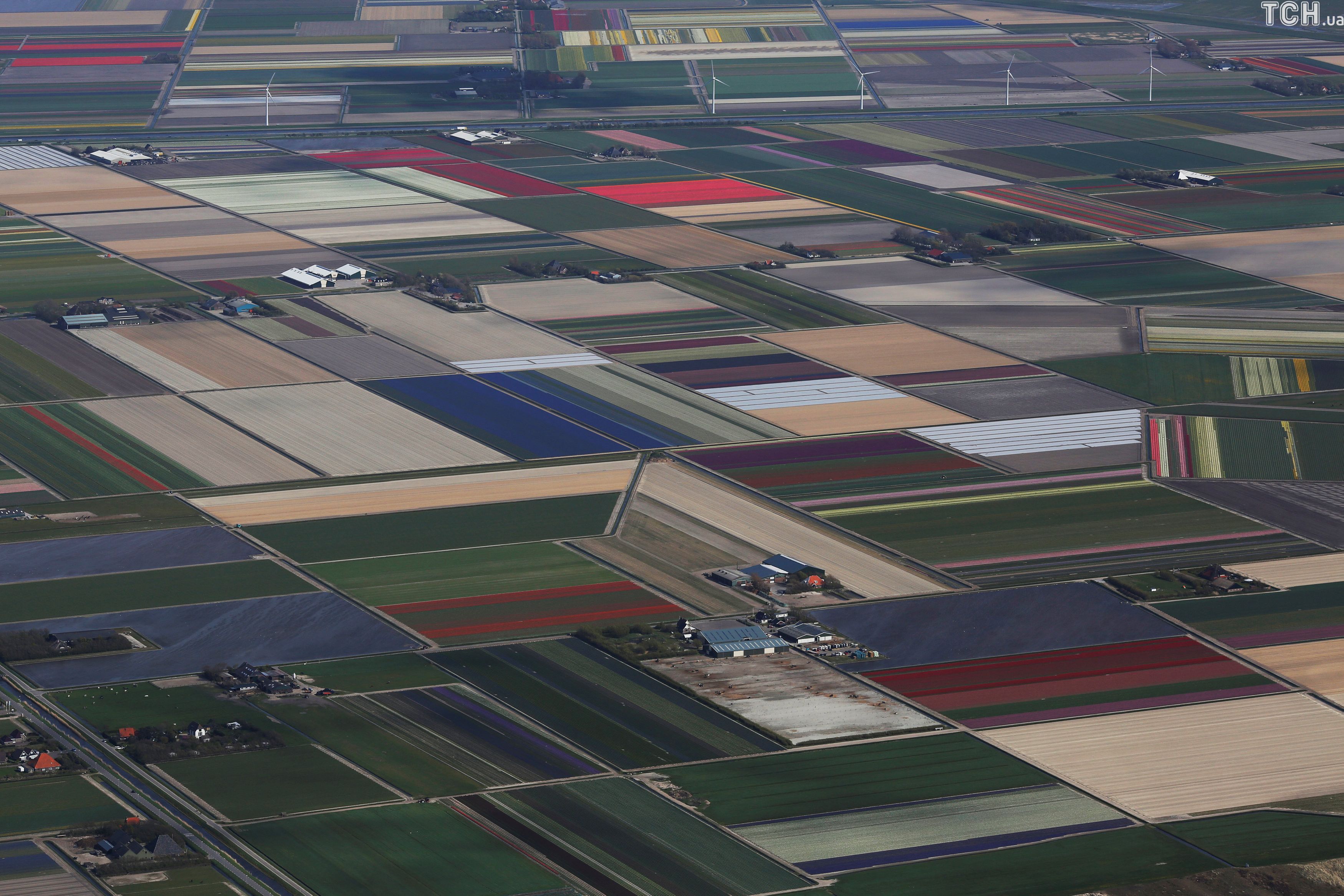 Строкаті латки: Reuters показало поля тюльпанів у Нідерландах з висоти пташиного польоту