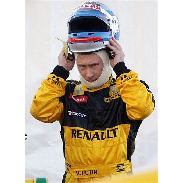 Росія, Санкт-Петербург. Прем'єр-міністр Росії Володимир Путін одягає шолом перед поїздкою на автомобілі Renault Формули 1 на спеціальному гоночному треку біля Санкт-Петербургу. / © AFP