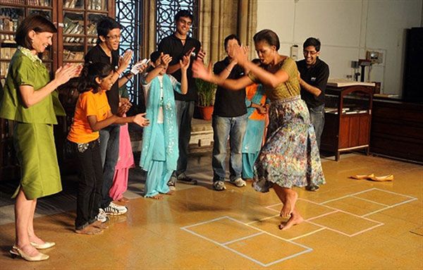 Індія, Мумбаї. Перша леді США Мішель Обама грає у "класики" під час зустрічі зі студентами в кампусі Мумбайського університету. / © AFP