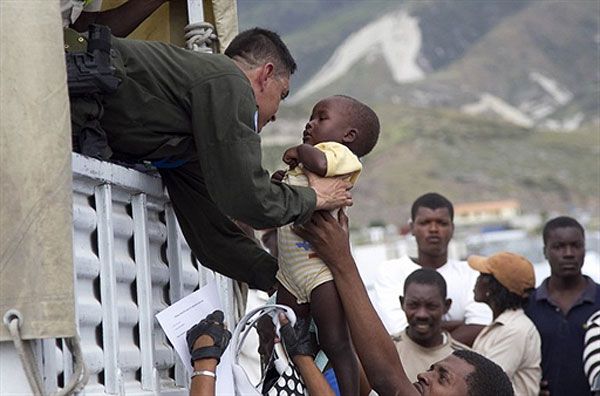 Гаїті, Порт-о-Пренс. Миротворці ООН вивозять місцевих мешканців на вантажівках ООН з міста Порт-о-Пренс, якому загрожує тропічний шторм Томас. / © AFP