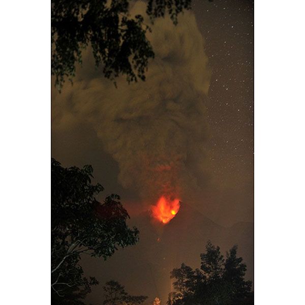 Індонезія, Клатене. Лава і попел від виверження вулкана Мерапі у провінції Центральна Ява на світанку. Авіакомпанії скасували щонайменше 36 рейсів у Джакарті через виверження найактивнішого вулкана Індонезії. / © AFP