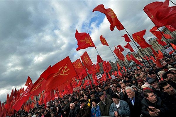 Україна, Київ. Прихильники Комуністичної партії України та комуністичної ідеології зібралися в центрі Києва з нагоди святкування Дня Жовтневої революції. / © AFP