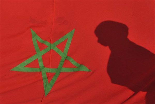 Марокко, Рабат. Тінь молодої жінки відбивається на марокканському прапорі під час демонстрації у Рабаті, яку провели на честь 35-річчя "Зеленого маршу". У листопаді 1975 року марокканський король Хасан II закликав 350 тисяч марокканців, "озброєних" Кораном і національними прапорами, вирушити до кордону із Західною Сахарою, щоб підтримати незалежність колишньої іспанської колонії. Колишня іспанська колонія, Західна Сахара, була анексована Марокко у 1975 році. / © AFP
