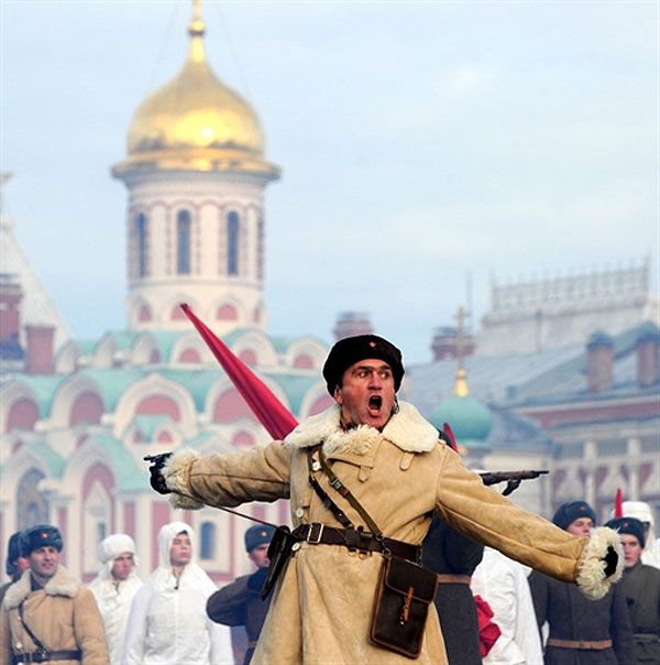 Росія, Москва. Російський солдат у радянській військовій формі часів Другої світової війни бере участь у параді на Красній площі в Москві. В Москві провели парад, присвячений відтворенню подій 7 листопада 1941 року, коли війська рушили на фронт прямо з Красної площі на боротьбу із фашистськими військами. / © AFP