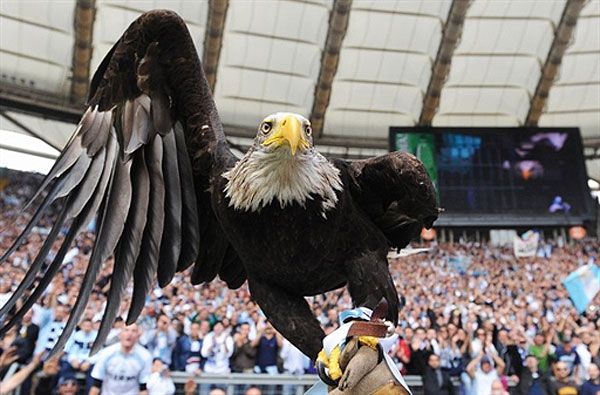 Італія, Рим. Прихильники "Лаціо" принесли на стадіон орла перед футбольним матчем "Лаціо" проти "Рома" на Олімпійському стадіоні у Римі. / © AFP