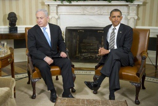 США, Вашингтон. Президент США Барак Обама провів зустріч з прем'єр-міністром Ізраїлю Біньяміном Нетаньяху в Овальному кабінеті Білого дому у Вашингтоні. Обама оголосив що настав час укладати мирну угоду в арабо-ізраїльському конфлікті. / © AFP