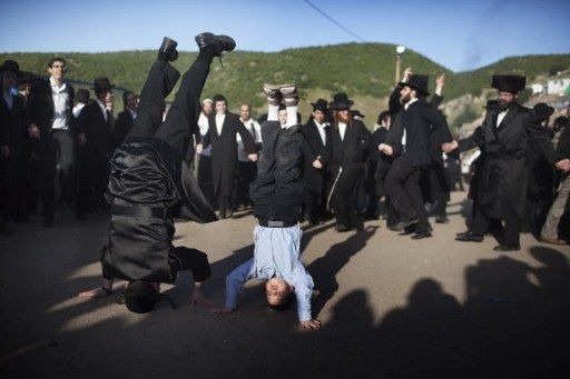 Ізраїль, Мерон. Ультра-ортодоксальні євреї виконують танок чоловіків під час святкування на могилі раббі Шимона бар Йохая у північному ізраїльському селі Мерон. Вони святкують одноденне свято Лаг Баомер на пам'ять про єврейського вченого. / © AFP