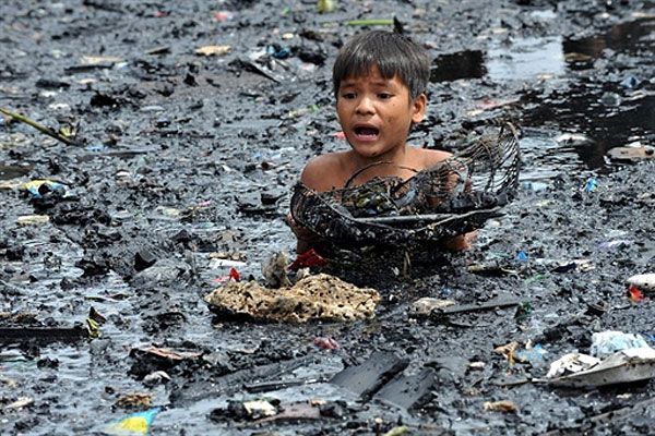 Філіппіни, Маніла. Дитина шукає речі у воді і намагається врятувати обвуглені предмети після гасіння пожежі у нетрях Малабон у Манілі. В результаті пожежі пожежні не змогли врятувати від вогню більше 300 будинків. Влада почала розслідування пожежі, в якій ніхто не постраждав. / © AFP
