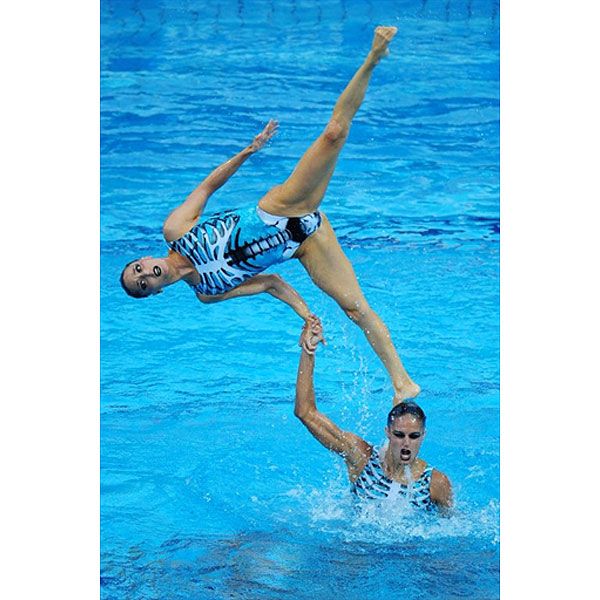 Угорщина, Будапешт: Команда Іспанії виконує вільні вправи під час фіналу чемпіонату Європи з плавання у Будапешті. / © AFP