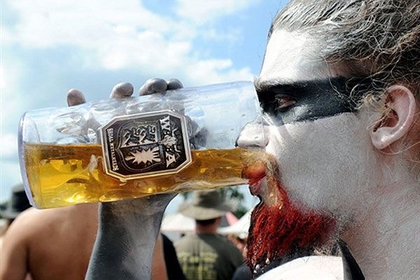 Німеччина. Любитель пива і важкої музики під час open-air фестивалю Heavy metal музики у північному німецькому місті Вакен. Цього року фестиваль проходить у Вакені 21 раз. / © AFP