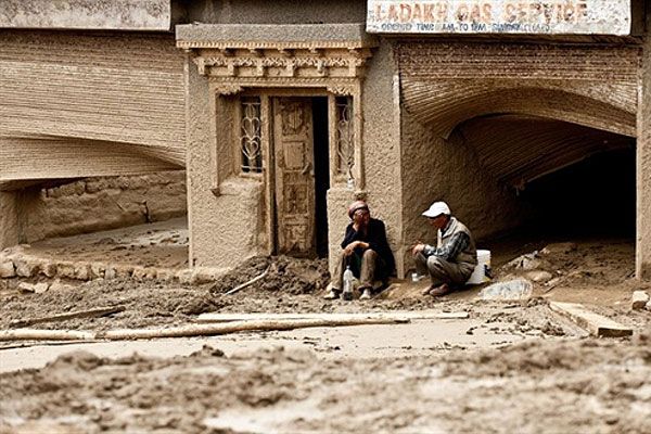 Індія, Лех. Місцеві жителі сидять серед руїн своїх будинків у селі Чогламсар у Лехі. Аварійно-рятувальні групи були направлені до віддалених гімалайських регіонів Індії. Вони намагалися доставити їжу і надати допомогу тим, хто залишилися в живих після руйнівних повеней, які забрали життя понад 130 людей. Сотні людей вважаються зниклими безвісти. Потужні зливи викликали руйнівні повені, які розмили дороги, знесли будівлі, мости та лінії електропередач. / © AFP