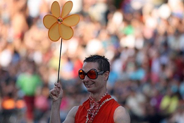 Німеччина, Кельн. Чоловік бере участь у конкурсі з водного балету, присвяченому проведенню рожевої п'ятниці під час гей-ігор у західному німецькому місті Кельн. У гей-іграх взяли участь близько 1000 спортсменів, які змагалися у 35 дисциплінах. / © AFP