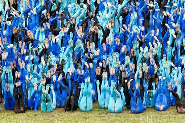 Великобританія, Ледбері. Гості фестивалю беруть участь у черговій голій масовій інсталяції американського художника Спенсера Туніка на фестивалі Big Chill у Херефордширі. Учасники акції, пофарбовані у різні кольори, формували різноманітні фігури для нової роботи Туніка. Фестиваль Big Chill проходив з 5 серпня по 8 серпня. У ньому взяли участь популярні гурти і музиканти, зокрема, Лілі Аллен і Massive Attack. / © AFP