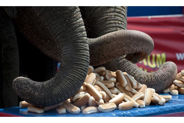 2.07. На Коні-Айленді, Нью-Йорк, провели змагання з поїдання булочок для хот-догів між людиною та слоном. Слони змогли з’їсти 41 булочку, а чоловіки лише 15. / © AFP