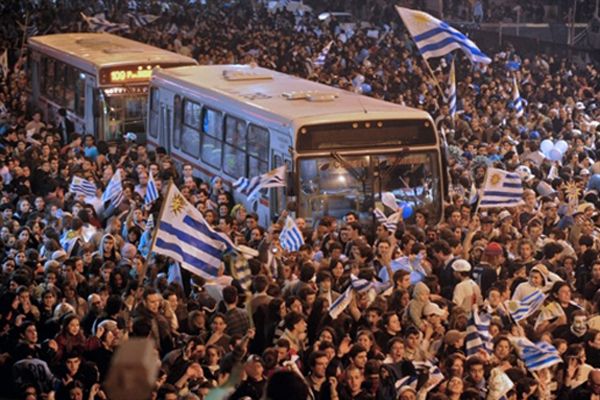 2.07. Вболівальники збірної Уругваю святкують перемогу своєї команди у матчі проти Гани на Чемпіонаті світу з футболу. / © AFP