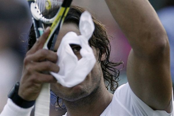 29.06. Іспанський тенісист Рафаель Надал святкує свою перемогу у матчі проти француза Поля-Анрі Матьо на Уімблдонському турнірі. / © AFP