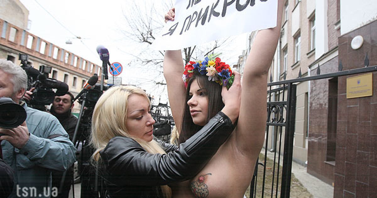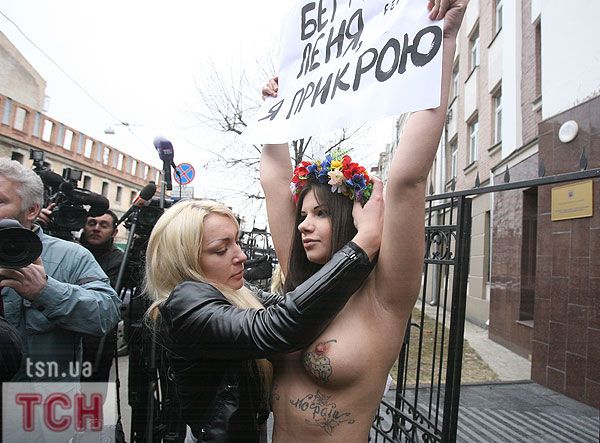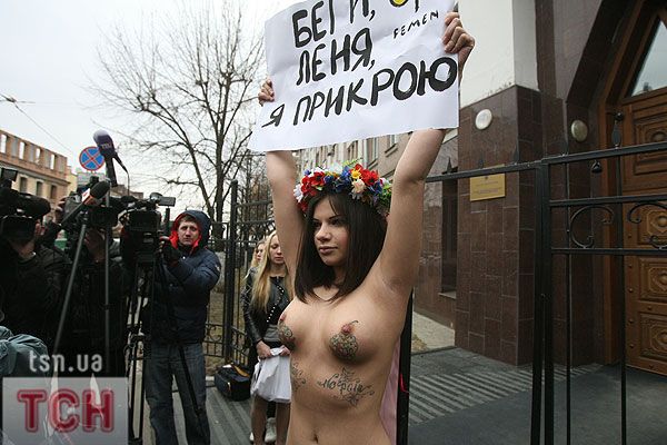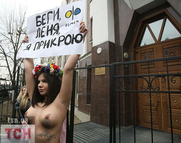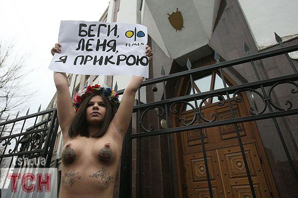 Акція FEMEN "Біжи, Льоню, я прикрию!" під будівлею Генпрокуратури в Києві