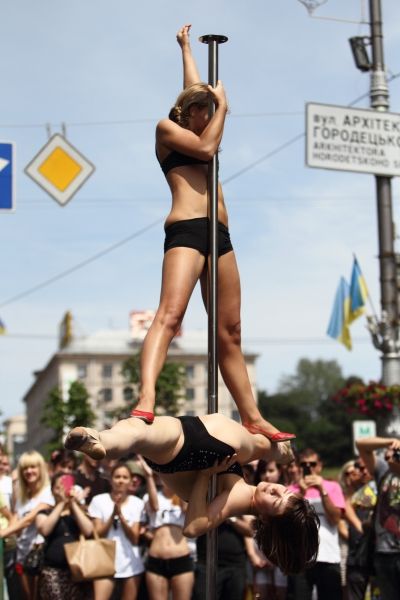 У центрі Києва напівоголені дівчата та хлопці танцювали на жердині