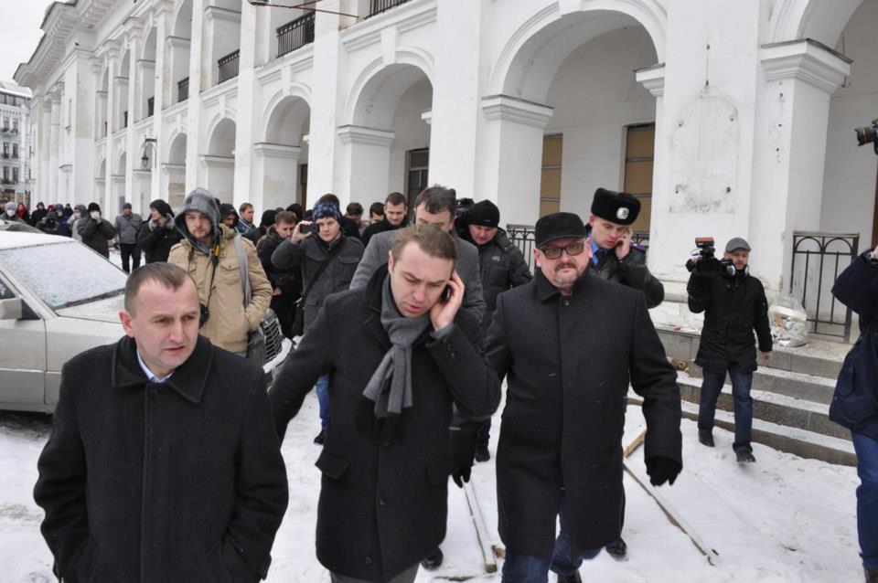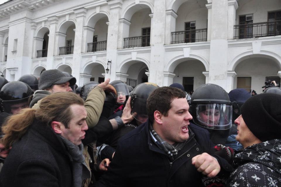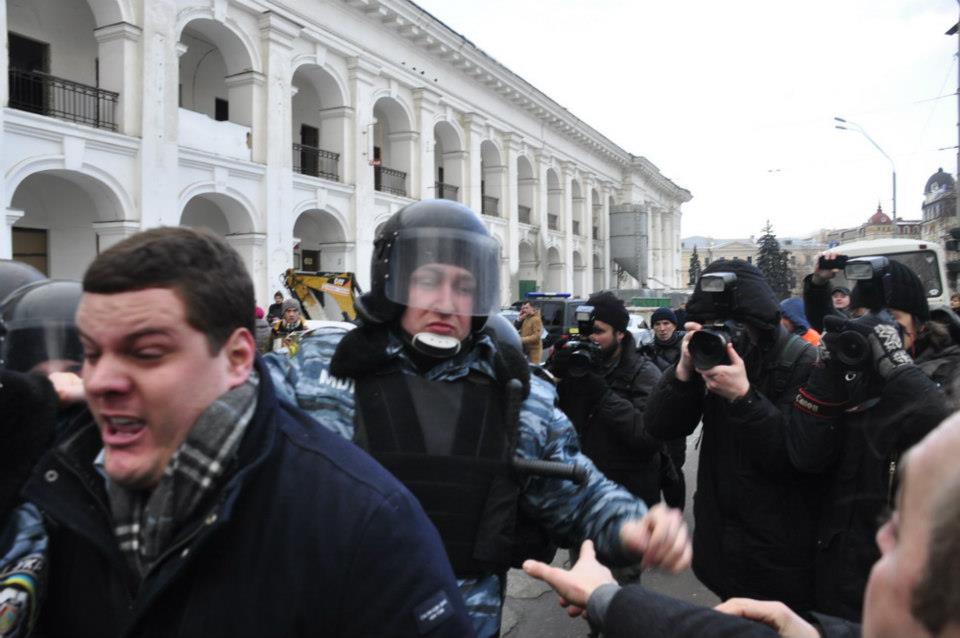 "В Гостинному дворі міліція затримала активістів, запакувала в автозак (усього набили 5 таких актозаків - ТСН.ua), також туди заштовхали народного депутата від "Свободи" Андрія Міщенка, - про це мені телефоном щойно повідомив з автозаку активіст, захисник Гостинного Двору Едуард Курганський. Зараз їх везуть у Подільське РВВС", - повідомляє користувач Natali Sokolenko.