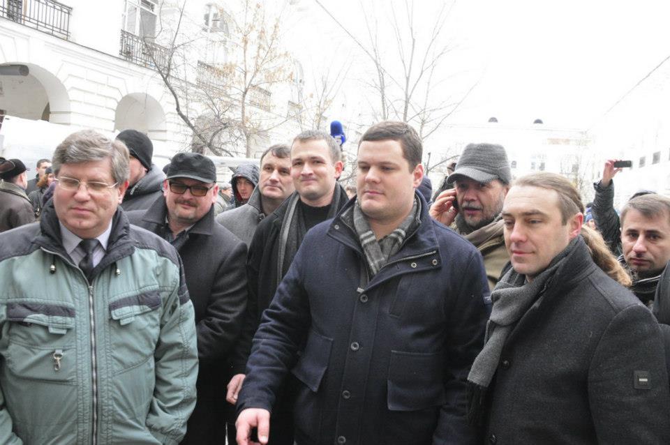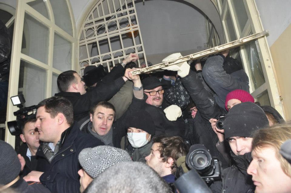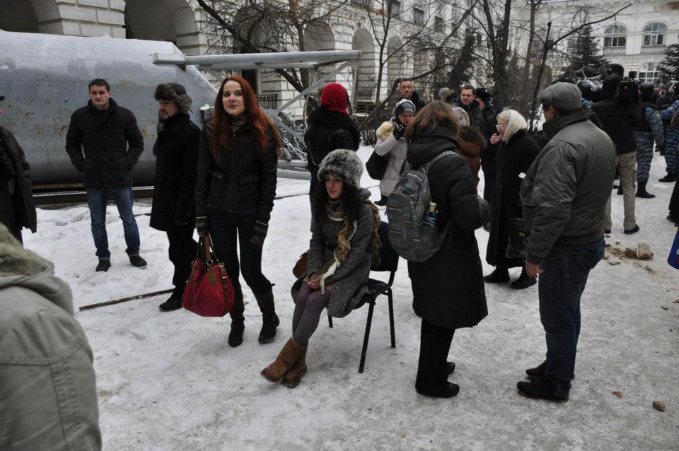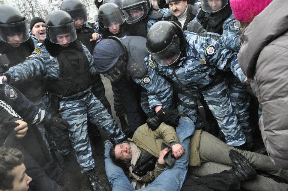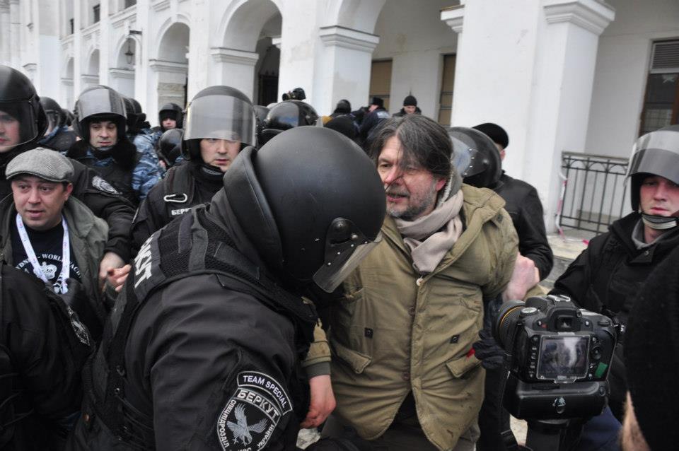Кілька депутатів зі "Свободи" і "Батьківщини" лягли під колеса автозаків, куди "запакували" активістів, але Беркут силоміць витягнув їх геть.