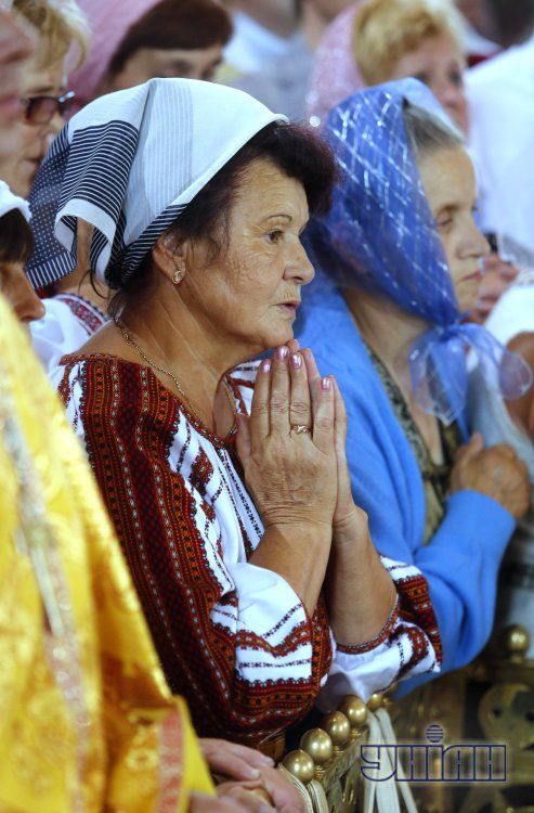 Багато вірян для урочистої ходи одяглися у вишиванки та несли над собою синьо-жовті прапори.