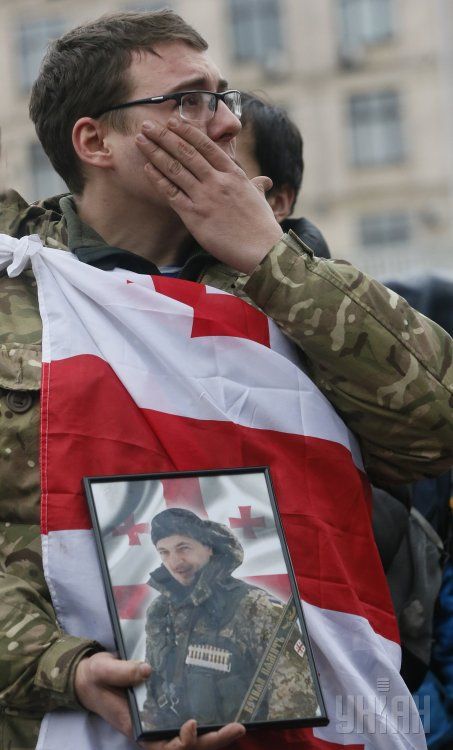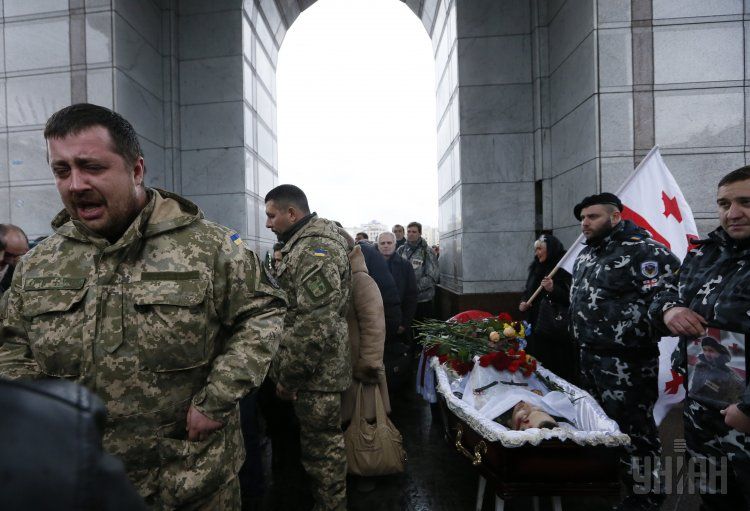 Айдарівця Олександра Григорішвілі поховають на Батьківщині - у Грузії. Попрощатися зі своїм земляком у центр Києва сьогодні приходили посол Грузії та колишній президент Михаїл Саакашвілі.