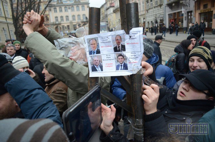 Свободівці побилися з активістами через "Стовп ганьби" / © УНІАН