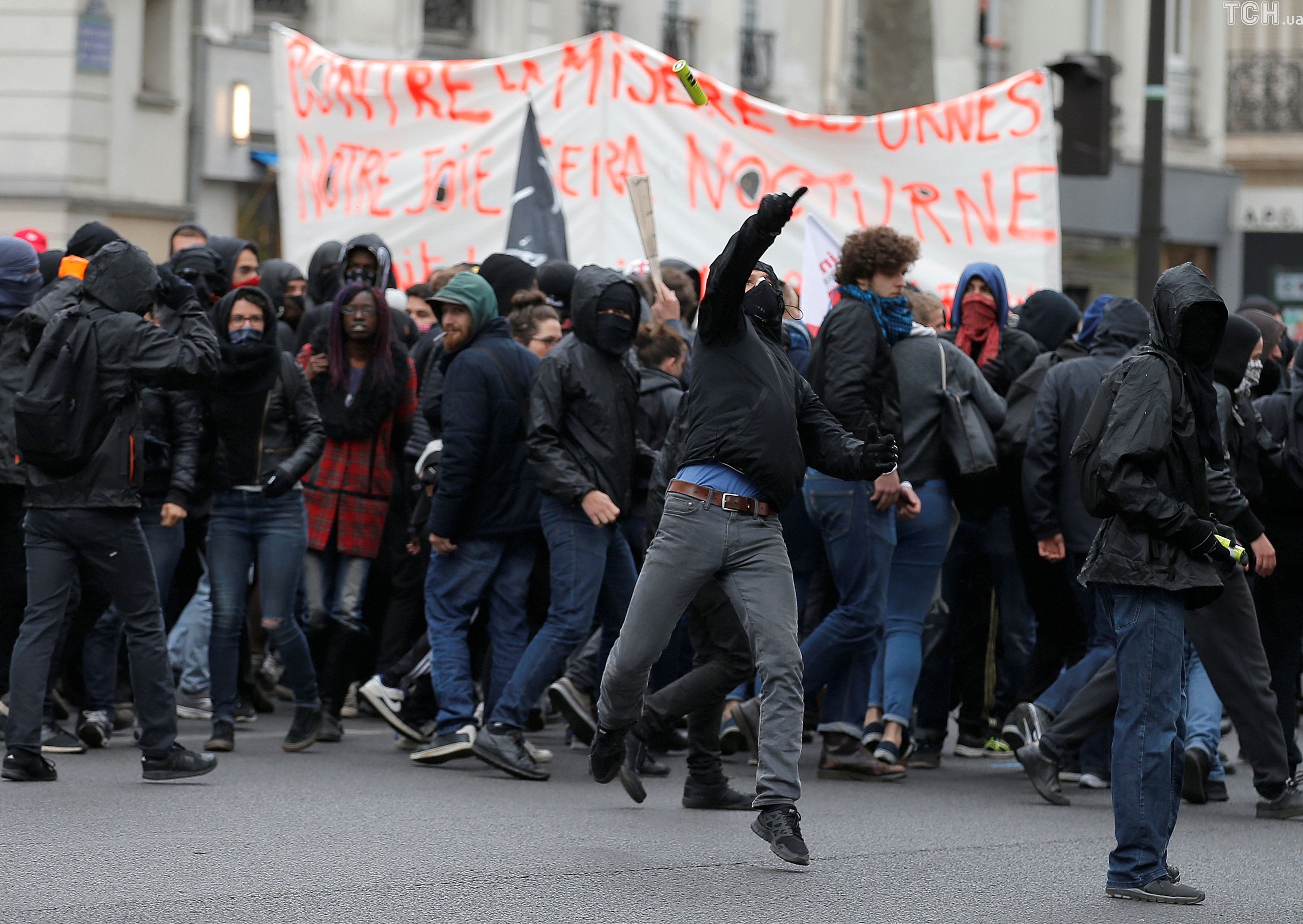 У суботу, 22 квітня, у столиці Франції Парижі відбулися акції протесту, на які вийшли до двох тисяч радикально налаштованих учасників. Поліції довелося навіть застосовувати сльозогінний газ, аби утихомирити мітингувальників.