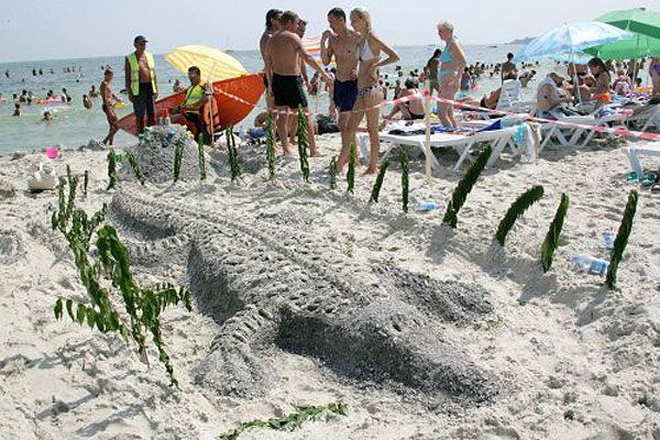 Учасники конкурсу в Одесі ліпили з піску крокодила, слона, будували замки з піску, а також барельєфи відомих людей. / © УНІАН