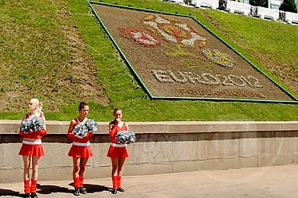 Крім Харкова, власні логотипи Євро-2012 і квіткові клумби-логотипи отримали Київ і Донецьк, а у Львові навіть запустили трамвай Євро-2012. / © mediaport.info
