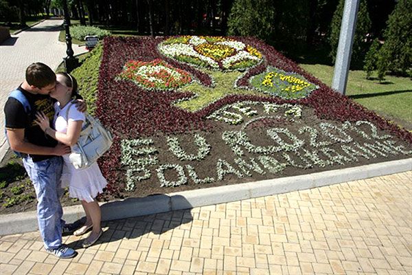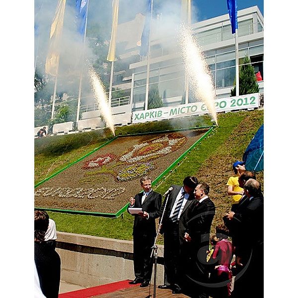 Квіткову клумбу із логотипом УЄФА Євро-2012 у Харкові влаштували на Пролетарській площі у центрі міста. / © mediaport.info