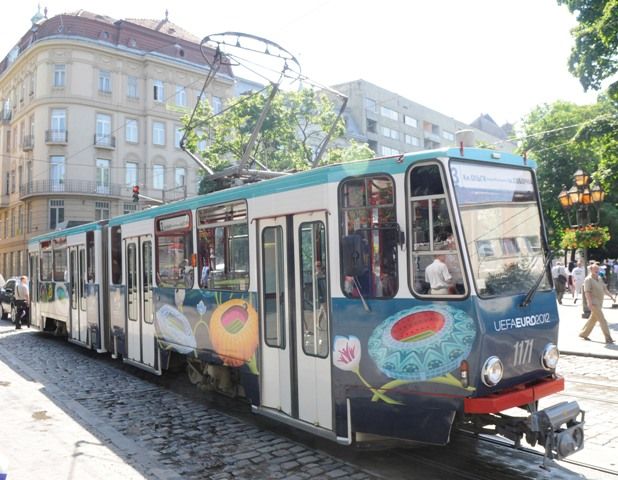 Трамвай Євро-2012 курсуватиме на маршрутах №1 і №9 та "нагадуватиме" львів’янам і туристам, що Львів - місто, яке приймає Чемпіонат Європи з футболу у 2012 році. / © 2012ua.net