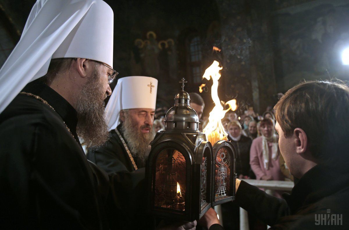 Зустріч Благодатного вогню з Єрусалима у Києво-Печерській Лаврі УПЦ Московського патріархату / © УНІАН
