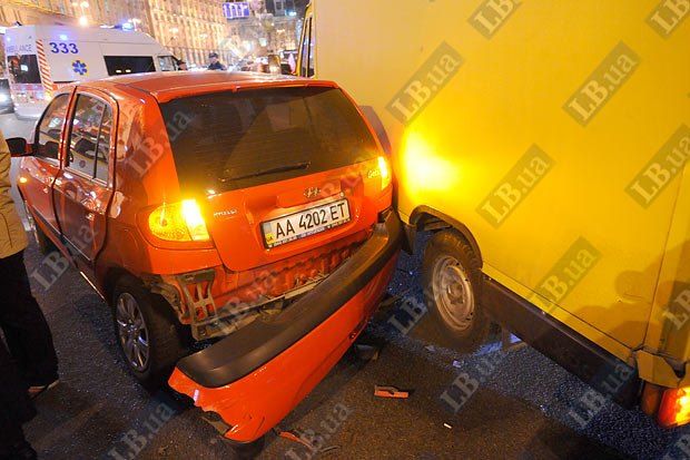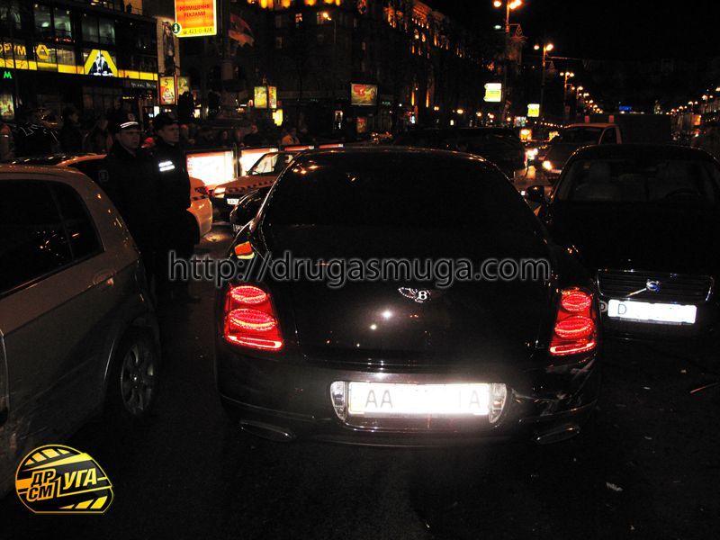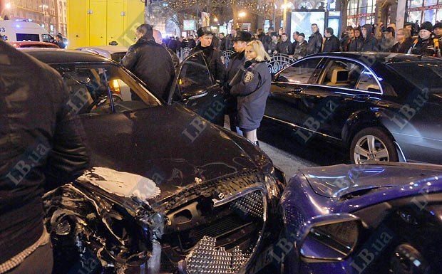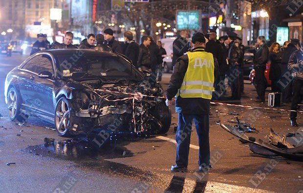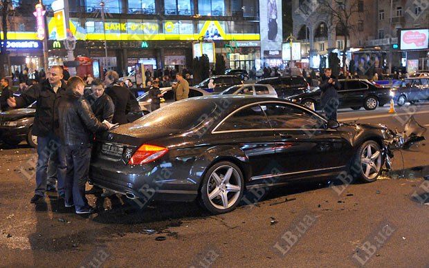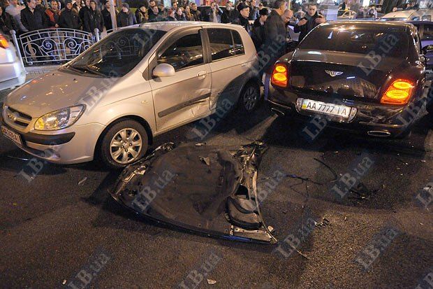 Винуватцем аварії на Хрещатику став автомобіль "Бентлі", довіреністю на управління якого, за даними ЗМІ, володіє нардеп від БЮТ Руслан Богдан. Автомобіль рухався Хрещатиком в напрямку Бесарабської площі на сигнал регулювальника, що забороняв рух. В цей же час з вулиці Прорізної почав рухатися "Мерседес", внаслідок чого сталося зіткнення обох іномарок.