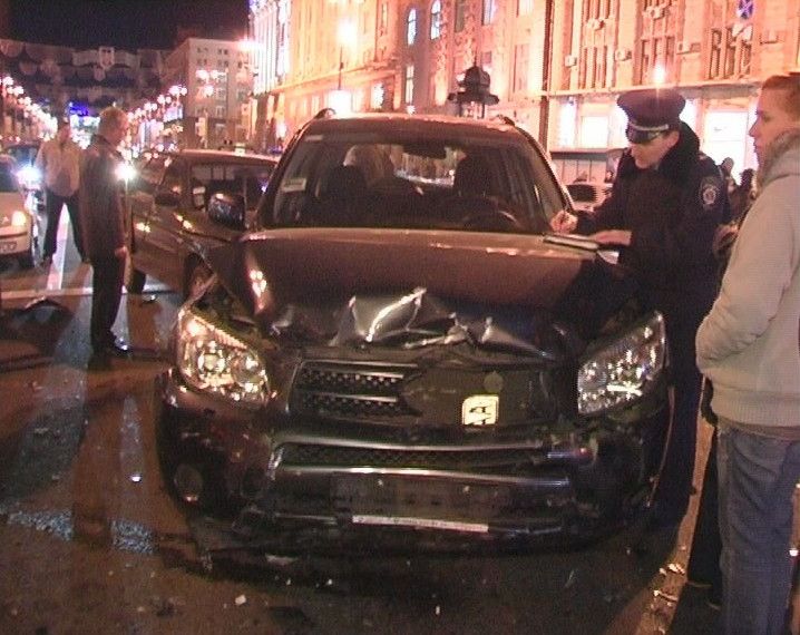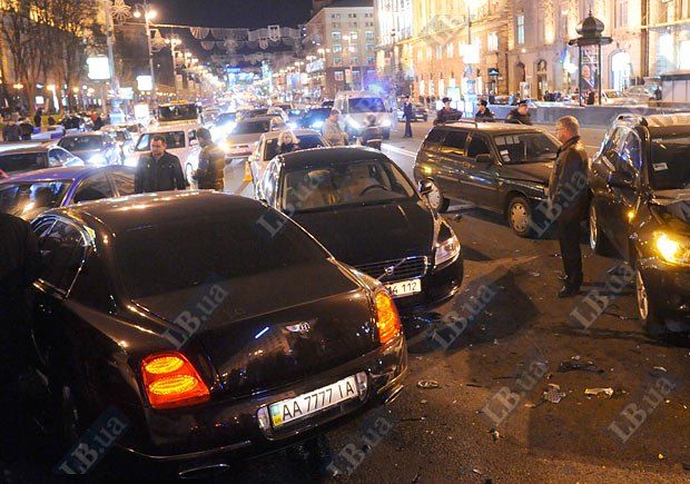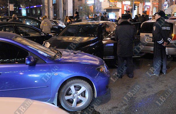 VIP-аварія на Хрещатику: збитий даїшник і 10 побитих машин