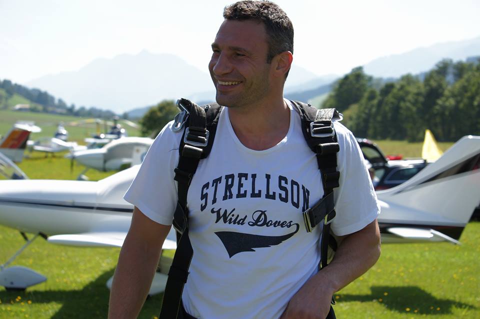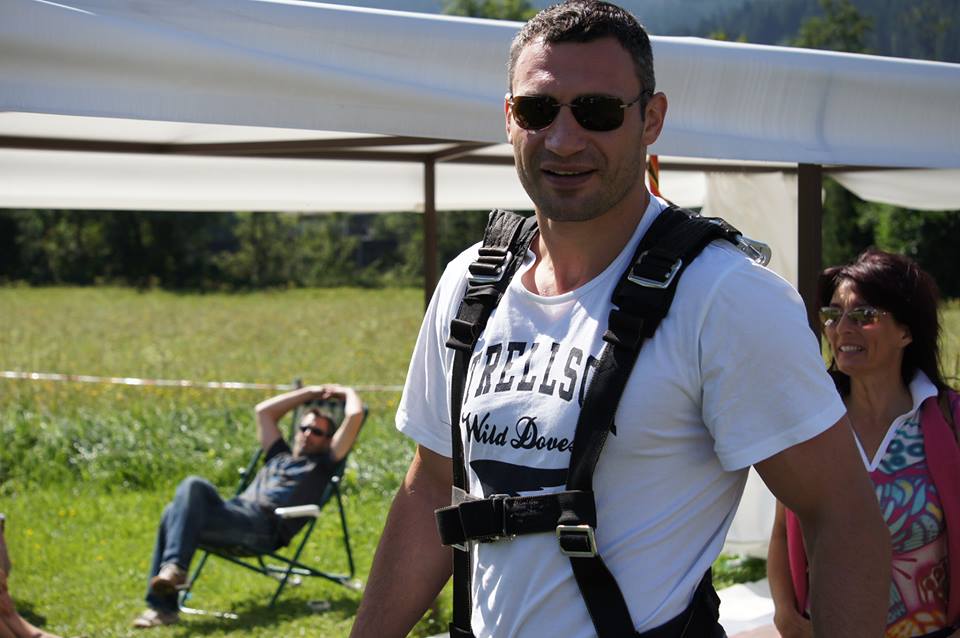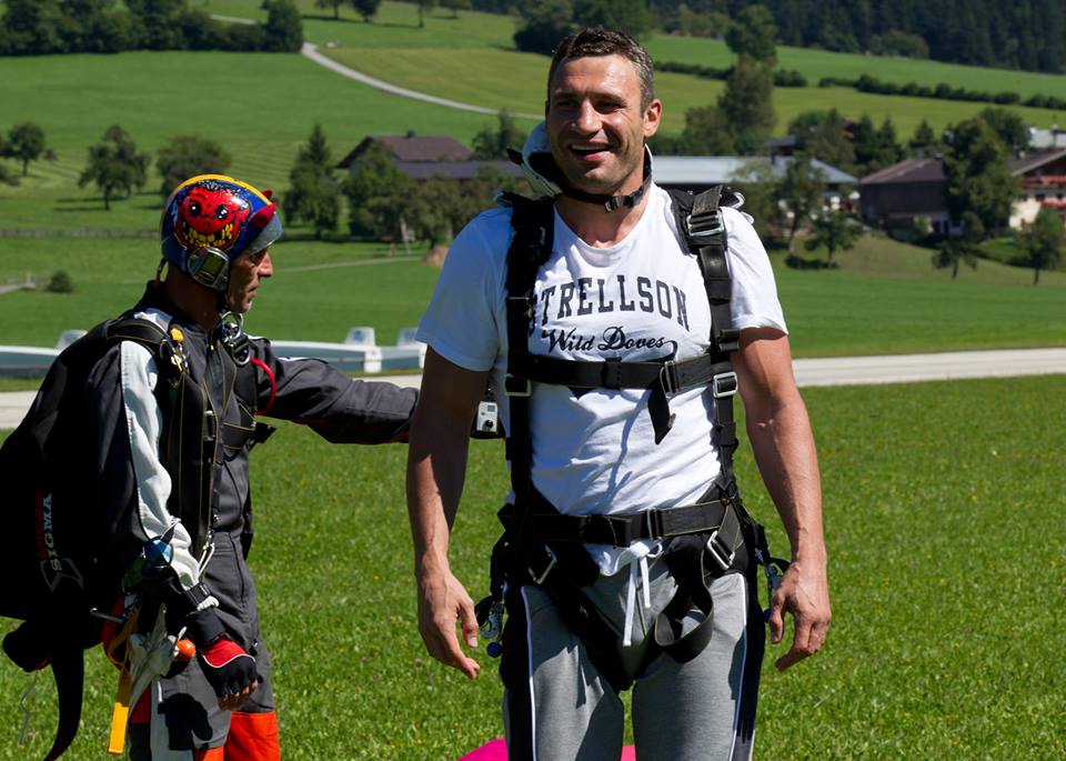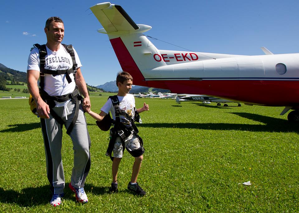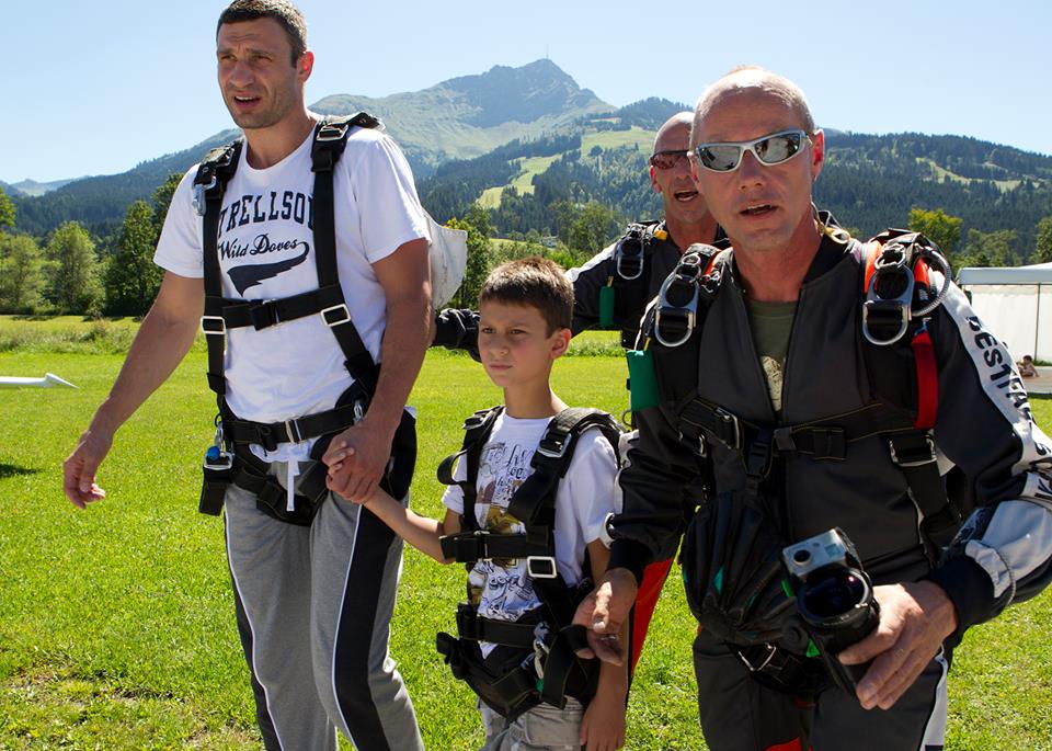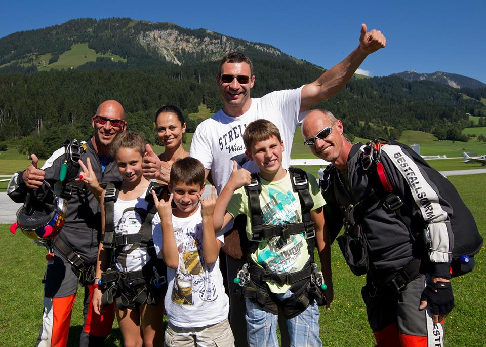 Український боксер та політик Віталій Кличко загітував родину на стрибок з парашутом. Про це він повідомив на своїй сторінці у соціальній мережі, де виклав також світлини з родинної події.