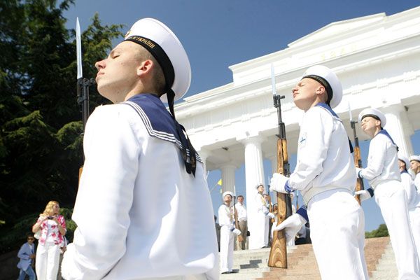 "ВМС України стали авангардом у взаємодії з міжнародними організаціями безпеки, впровадженні кращих світових стандартів підготовки",– сказав президент України у Севастополі. / © УНІАН