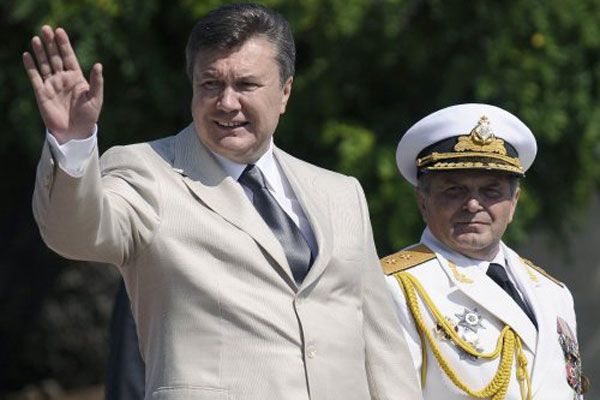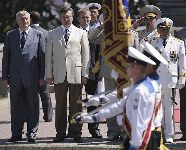 Президент Украини Віктор Янукович і міністр оборони України Михайло Єжель (ліворуч) під час урочистостей з нагоди Дня флоту України у Севастополі. / © PHL.com.ua