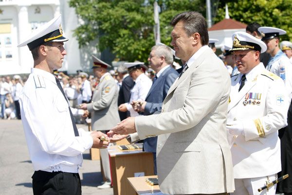 Президент та Верховний головнокомандувач Збройних Сил України Віктор Янукович вручив кращим випускникам Академії ВМС імені П.С.Нахімова у Севастополі кортики. / © President.gov.ua