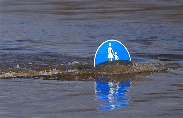 Дорожній знак на затопленій вулиці у місті Урденбах поблизу Дюссельдорфа, Західна Німеччина. / © AFP