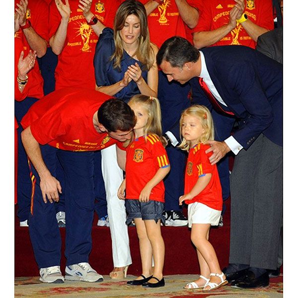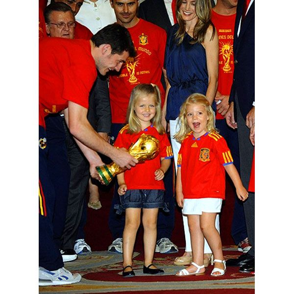 Капітана і голкіпера збірної Іспанії Ікера Касільяса привітала з перемогою і поцілувала принцеса Леонора, її сестра принцеса Софія, а також їхні батьки: принц Феліпе та принцеса Летиція. / © AFP
