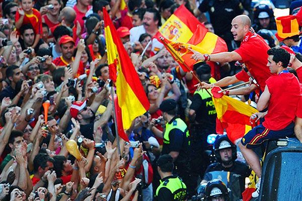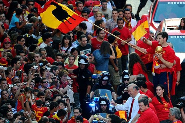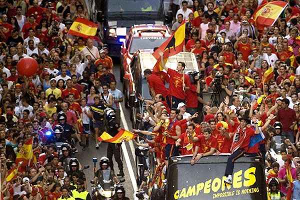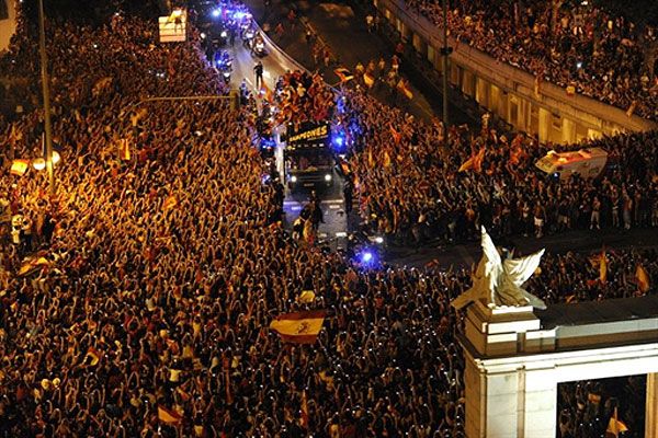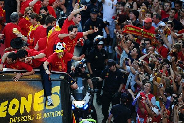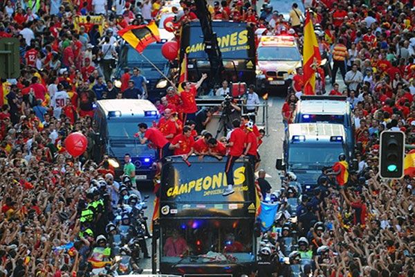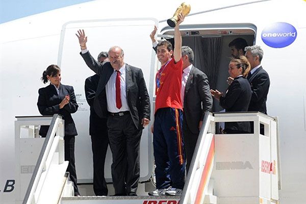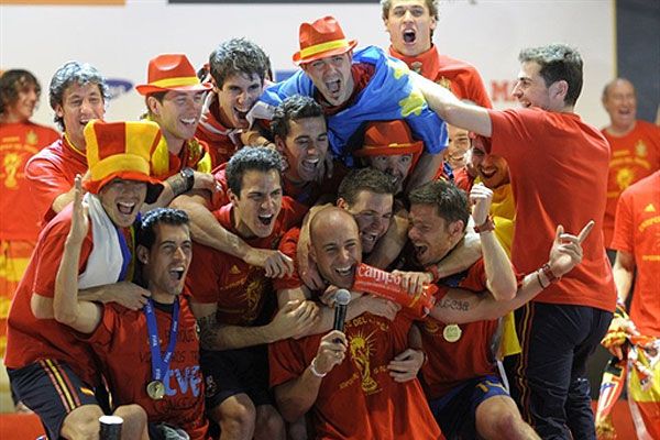 Футболісти і тренери збірної Іспанії, які стали переможцями Чемпіонату світу-2010 у Південній Африці, повернулись додому тріумфаторами, у Мадриді їх зустрічав мільйонний натовп прихильників.