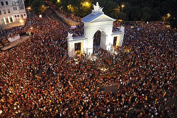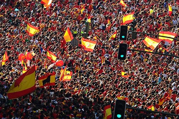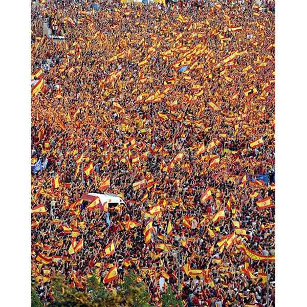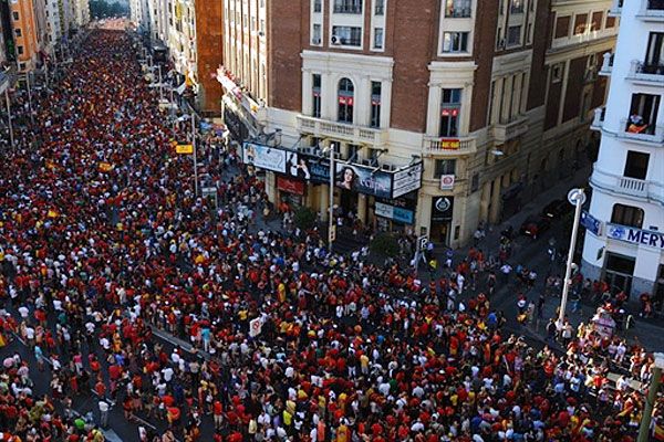 Більше мільйона людей вийшли на вулиці Мадрида, щоб привітати збірну Іспанії з перемогою на Чемпіонаті світу з футболу-2010. / © AFP