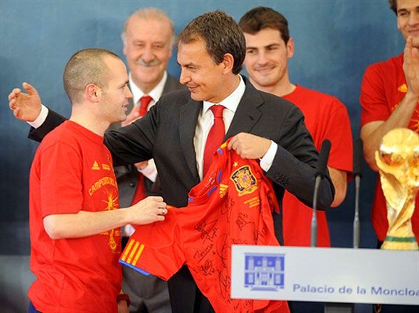 Андрес Іньєста подарував прем’єр-міністру Іспанії футболку з автографами всіх футболістів збірної / © AFP