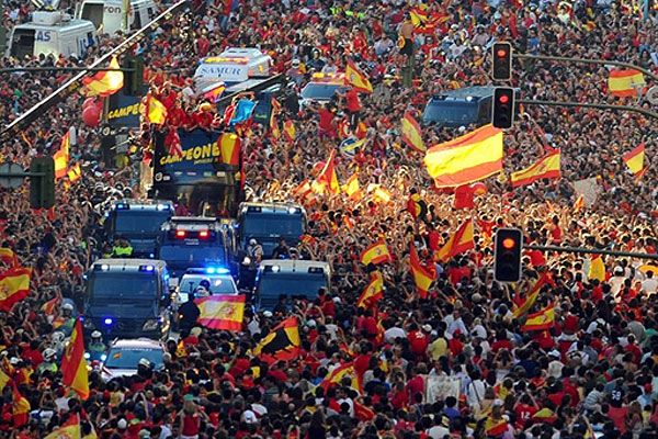 Більше мільйона іспанців вийшли на вулицю, щоб привітати футболістів збірної Іспанії - своїх національних героїв. / © AFP
